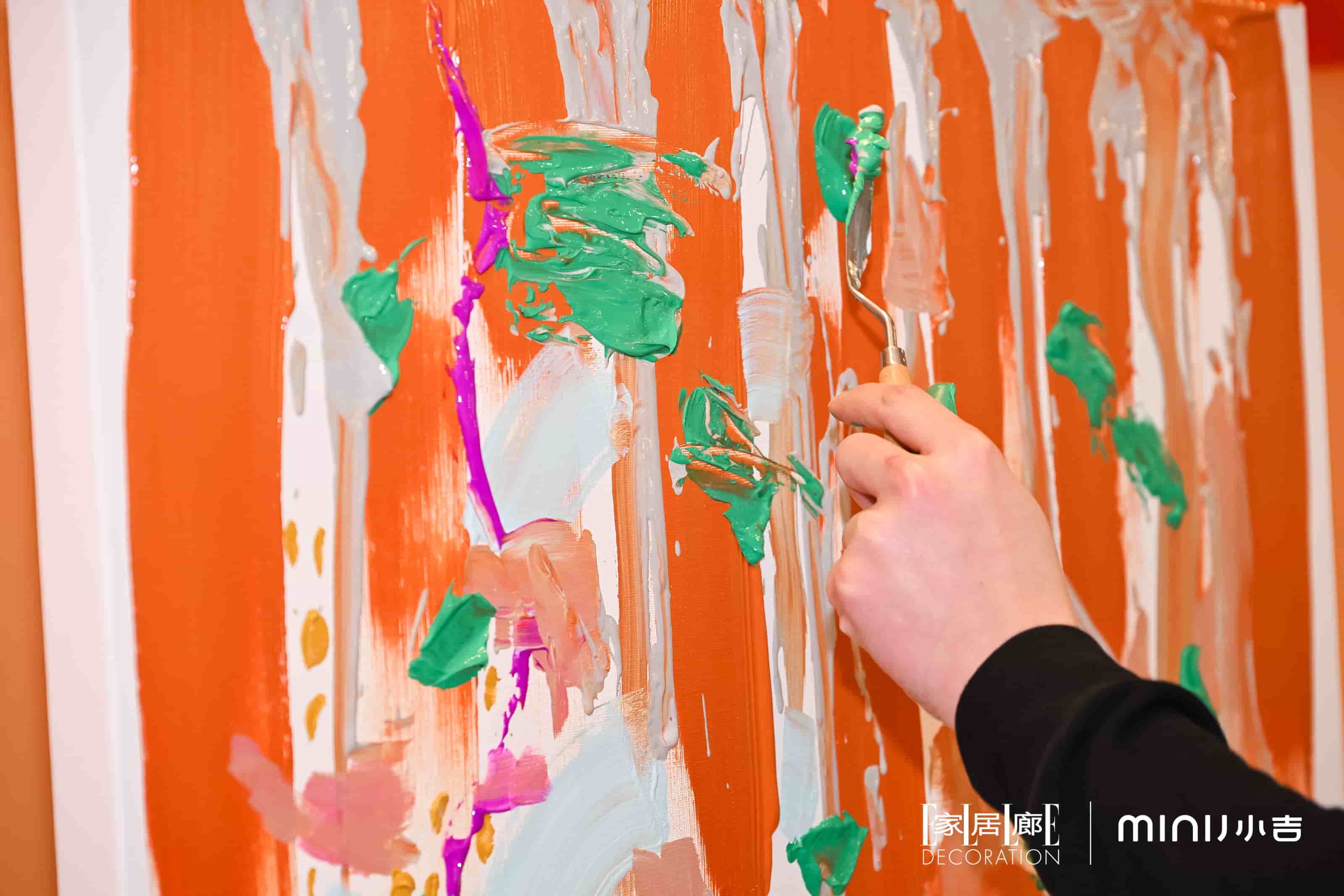 展览期间,小吉特别策划了设计师沙龙环节,邀请跨界艺术家王令尘(Oscar Wang)与众多设计师,围绕“共生之美”进行艺术画作共创。活动中,品牌标志性的圆润R角、复古烤漆色彩等套系化核心视觉基因,在艺术家的笔触下自由流淌。